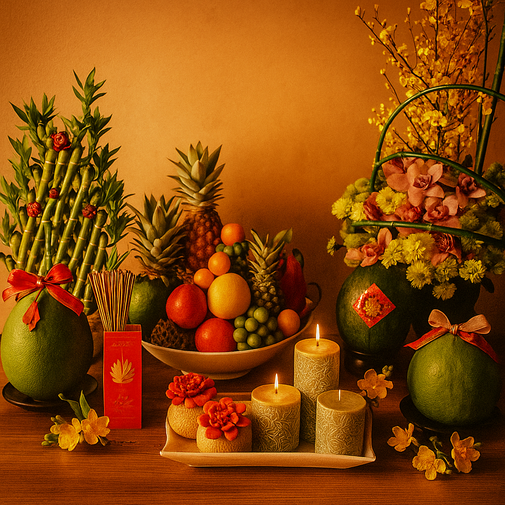 Bộ lễ Tứ Phẩm (Hoa – Quả – Hương – Nến) là một trong những lễ vật cổ truyền mang ý nghĩa sâu sắc trong đời sống tín ngưỡng của người Việt. Tứ phẩm không chỉ đơn thuần là những vật phẩm dâng cúng, mà còn là biểu tượng cho sự kết nối giữa con người với cội nguồn, giữa thế giới hữu hình và vô hình, thể hiện lòng hiếu kính, biết ơn và sự cầu mong bình an, may mắn cho gia đình.