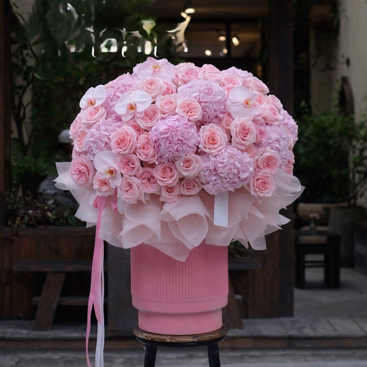 Bình hoa hồng phấn được thiết kế tinh tế với tông màu nhẹ nhàng, mang lại cảm giác dịu êm và gần gũi. Từng bông hoa được chăm chút cẩn thận, tạo nên một tổng thể sang trọng nhưng vẫn giữ được nét thanh thoát, phù hợp để gửi gắm tình cảm trân trọng và yêu thương đến mẹ.