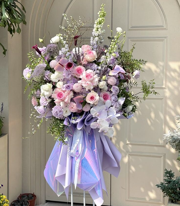 Tựa như một bản giao hưởng dịu dàng giữa sắc tím thanh lịch và hồng phấn nhẹ nhàng, là mẫu hoa chúc mừng khai trương mang đậm tinh thần hiện đại, sang trọng và tinh tế. Đây là món quà thể hiện lời chúc khởi đầu hanh thông, kinh doanh phát đạt và luôn rực rỡ như chính màu hoa. Một lựa chọn “chuẩn gu” để thể hiện đẳng cấp và lời chúc khéo léo đến người nhận – vừa nổi bật, vừa đầy thiện ý.