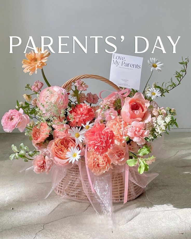 Tựa như một khu vườn nhỏ đong đầy tình cảm, giỏ hoa là bản hòa ca của những đóa hồng đào, cúc trắng, cẩm chướng cam – nhẹ nhàng mà rực rỡ, tinh khôi nhưng vẫn nồng nàn. Từng nhành hoa như lời thì thầm trìu mến, thay bạn nói lên sự biết ơn, yêu thương và trân quý dành cho những người thân yêu nhất.
