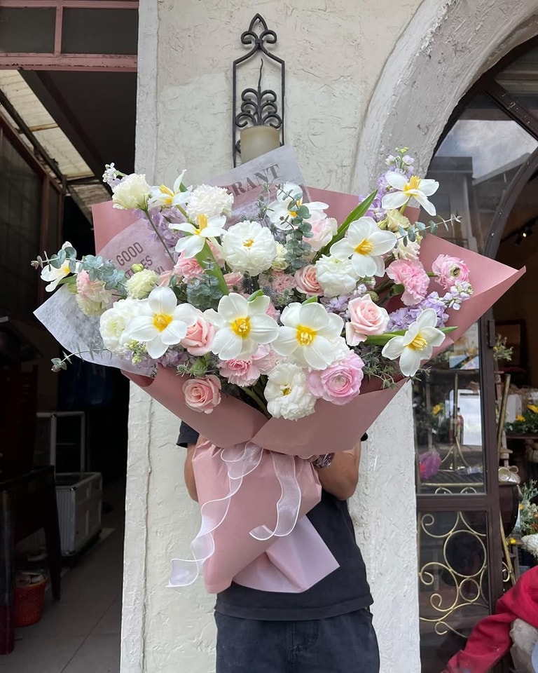 Như một khúc giao mùa dịu dàng giữa xuân và hè, bó hoa là sự hòa quyện khéo léo giữa sắc trắng thanh cao và những gam hồng pastel ngọt ngào. Mỗi bông hoa bung nở như lời thì thầm của trái tim – trong sáng, chân thành và đầy hy vọng. Vẻ đẹp ngọt ngào mà không quá rực rỡ, tươi tắn nhưng vẫn giữ được nét trang nhã, là món quà lý tưởng để gửi gắm những điều tốt đẹp nhất đến người bạn trân quý.