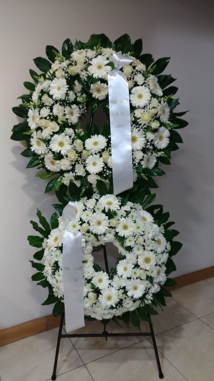 Vòng hoa đôi được thiết kế cân đối với hai vòng tròn trắng tinh khôi, tượng trưng cho sự vĩnh hằng và lời tiễn đưa trọn vẹn. Đây là cách bày tỏ sự thành kính, cảm thông sâu sắc và gửi gắm lời cầu nguyện cho người đã khuất được an nghỉ. Sự hiện diện của vòng hoa đôi giúp không gian tang lễ thêm phần trang nghiêm, trân trọng.