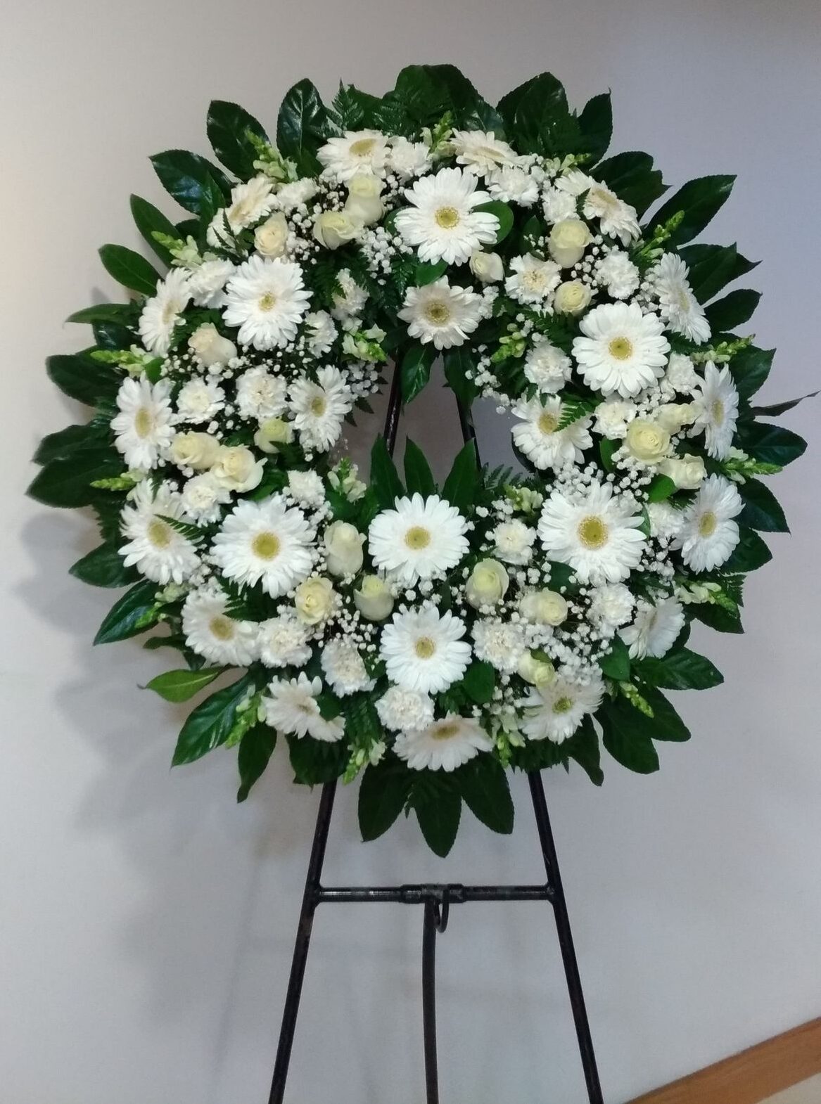 Vòng hoa trắng tinh khôi, thiết kế thanh nhã và cân đối, mang thông điệp tiễn biệt trong sự tôn kính và cầu chúc người đã khuất ra đi thanh thản. Hình tròn biểu tượng cho sự vĩnh hằng và trọn vẹn, giúp không gian tang lễ thêm phần trang nghiêm, lắng đọng. Phù hợp gửi viếng trong tang lễ, lễ cầu siêu, lễ tưởng niệm tại chùa, nhà thờ hoặc các nghi lễ tôn giáo khác. Thích hợp cho gia đình, bạn bè, đồng nghiệp hoặc tổ chức khi muốn gửi lời chia buồn một cách trang trọng, lịch sự.