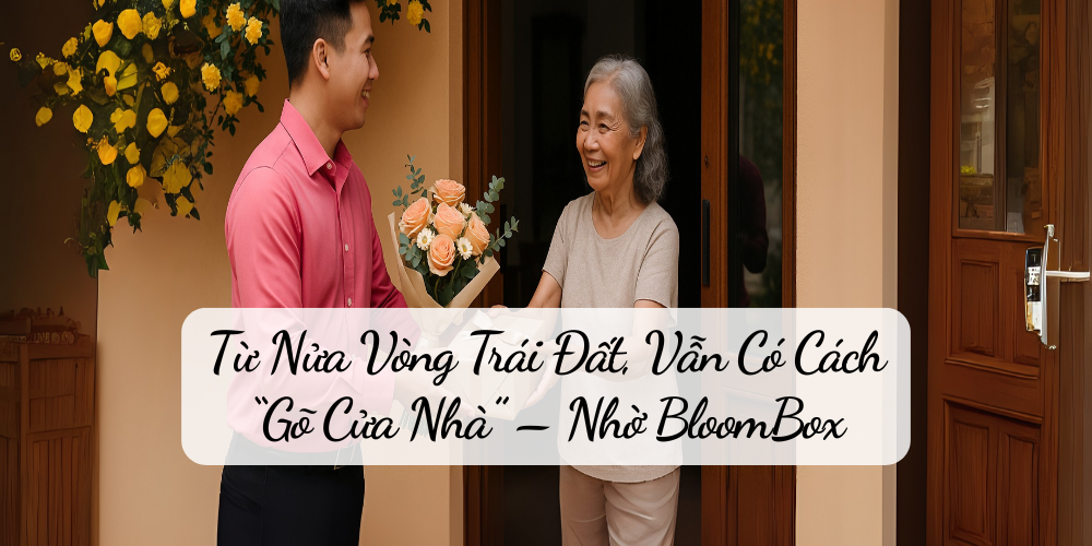 Từ nửa vòng trái đất, vẫn có cách “gõ cửa nhà” – nhờ BloomBox. Mỗi món quà, mỗi lời thăm hỏi đều được chúng tôi thực hiện với trái tim, như chính bạn đang đứng trước cửa nhà người thân, trao đi yêu thương.